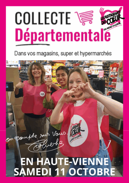 Les Restos du Cœur de la Haute-Vienne organisent une collecte départementale exceptionnelle le samedi 11 octobre 2025, dans de nombreux magasins du département.