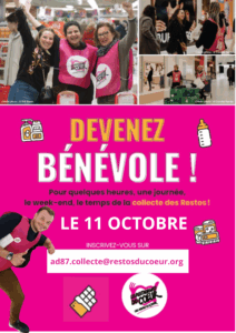 Les Restos du Cœur de la Haute-Vienne organisent une collecte départementale exceptionnelle le samedi 11 octobre 2025, dans de nombreux magasins du département.