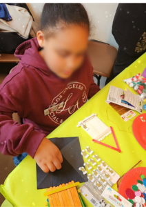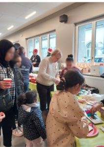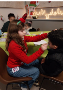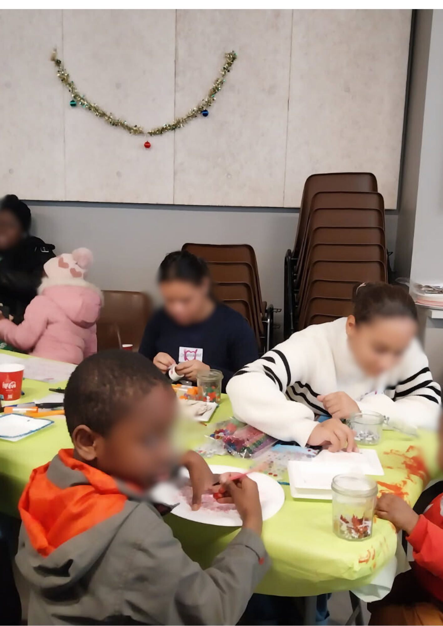 Le Père Noël a fait son entrée sans bruit inutile. Des friandises ont été distribuées, des sourires échangés, des regards qui s’illuminent. Autour, des tables couvertes de couleurs, des ateliers de coloriage, de fabrication de décorations de Noël, des gestes appliqués, et une concentration sérieuse. Créer, même quelques minutes, c’est déjà faire partie de la fête !